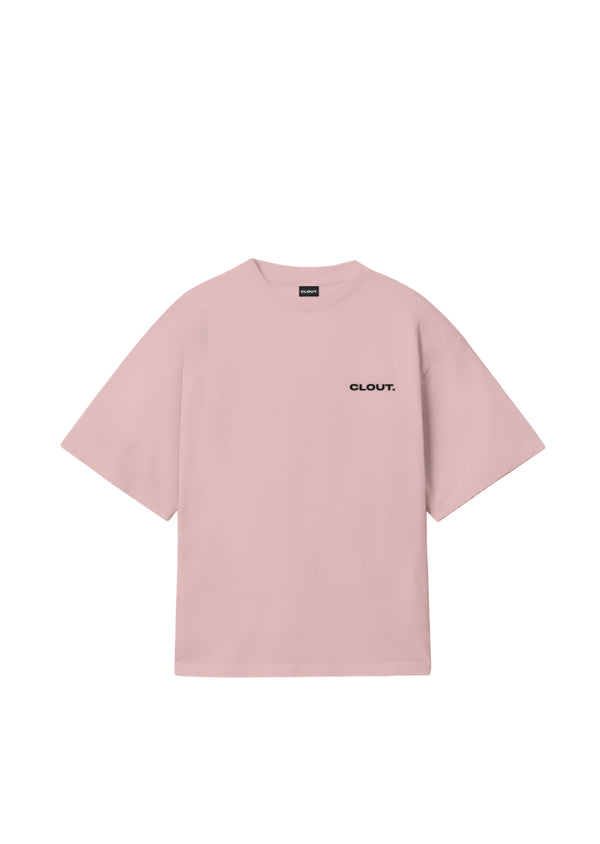 Introducing the CLOUTBasics-Baby Pink T-Shirt, a t-shirt crafted from luxury medium weight cotton, with a classic/regular fit. It features the Clout logo to the front and triangle co-ordinate Clout logo at the back.
