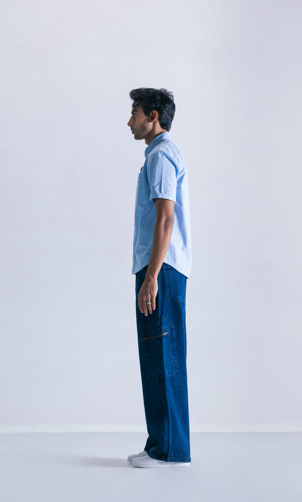 Elevated ease meets utilitarian refinement. The Clout Cargo Pocket Denim Jeans are crafted from premium heavyweight denim, tailored in a relaxed silhouette that evokes effortless sophistication. Designed with clean, architectural lines and functional zipper cargo pockets, these jeans offer both form and function—without compromise.