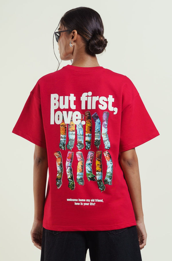 Loose-fitting T-shirt With A Round Neck And Short Sleeves. Contrast Front And Back Print.