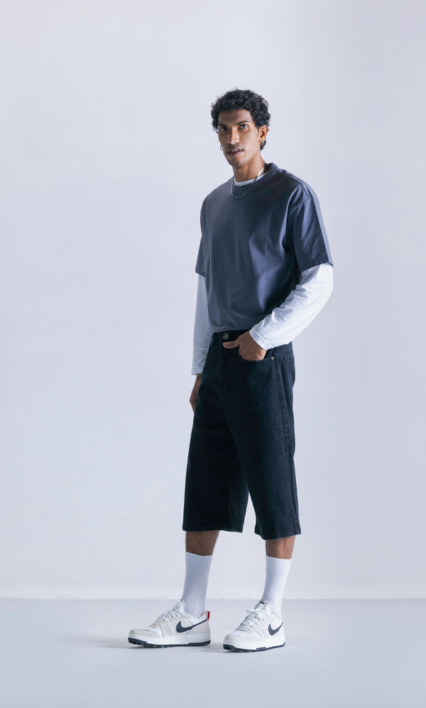 Embodying the bold spirit of streetwear and functional comfort, the Clout Relaxed Fit Denim Jorts are crafted for those who move with ease and speak with style. Featuring a wide-leg, knee-length silhouette, this piece is cut from premium cotton denim treated with a distinctive Black Ink Wash — a subtle yet striking finish that adds depth without distress.