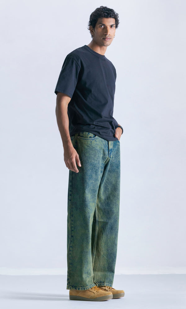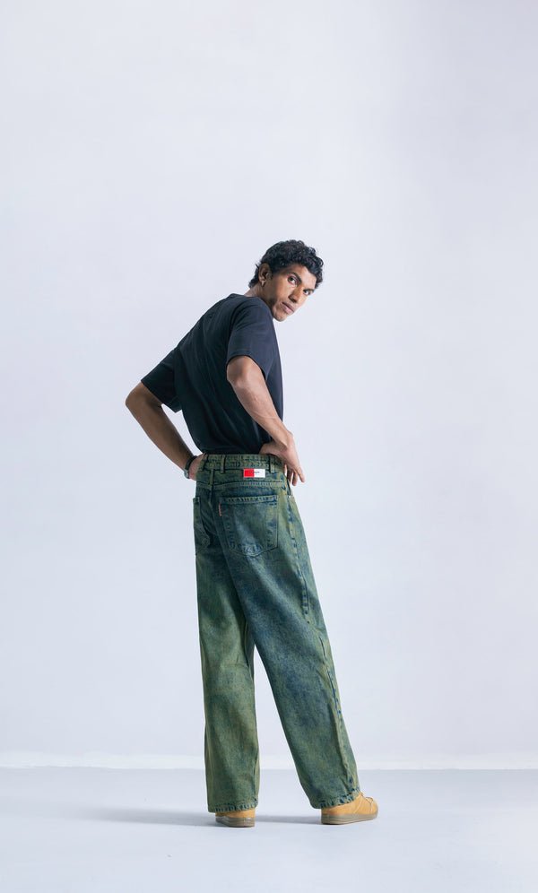 These Washed Moss Straight Fit Jeans are cut with a relaxed silhouette and crafted from premium cotton denim, finished with a custom green-blue tonal wash that sets them apart. The subtle grain and pigment variation give them a lived-in, vintage edge—while the clean straight leg keeps things sharp and easy to style.