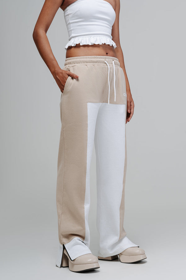 These sweatpants have a simple and comfortable fit that features panels and is made of heavy loopback cotton. They have an elasticated waistband and zip adjusters at the hem of each leg. Additionally, there is a rear patch pocket on the left side, as well as welt hand pockets. The brand's name logo is printed on the front side of the pants.