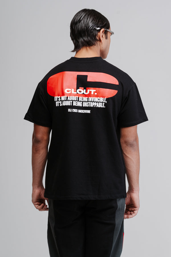 Introducing The Activist T-shirt in Jet Black, a t-shirt crafted from luxury medium weight cotton, with a Oversized fit. It features the Clout logo to the front and Clout logo at the back with Statement Text.